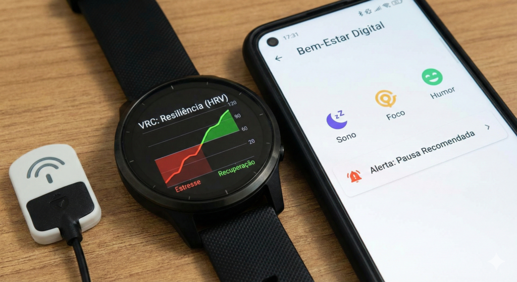 No que diz respeito aos dispositivos vestíveis, eles representam a democratização da neurociência aplicada. Acima de tudo, a métrica mais valiosa para o profissional de 2026 é a Variabilidade da Frequência Cardíaca (VRC ou HRV).