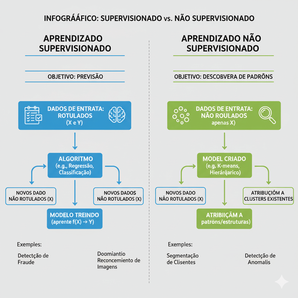 O aprendizado supervisionado e não supervisionado é utilizado para resolver problemas diferentes dentro do aprendizado de máquina. Por isso, entender