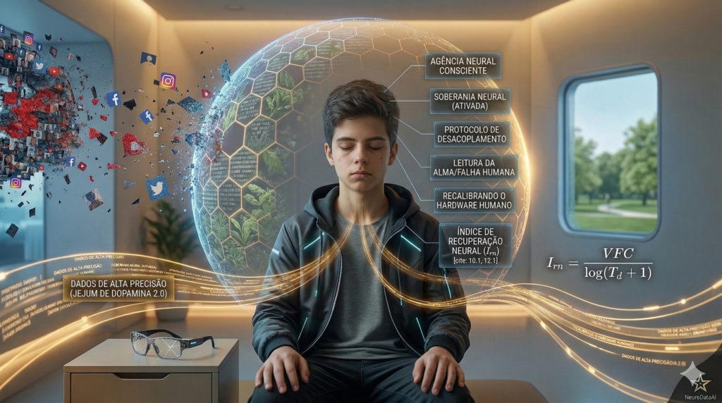 Finalmente, chegamos ao ponto de inflexão. Em 2026, a sobrevivência mental não é garantida pela desconexão — uma utopia impraticável — mas pela Soberania Neural. Recuperar o controle do seu sistema de recompensa exige o que chamamos de Jejum de Dados de Alta Precisão. Não se trata de desligar o Wi-Fi, mas de reprogramar a forma como o seu hardware biológico interage com o software global.