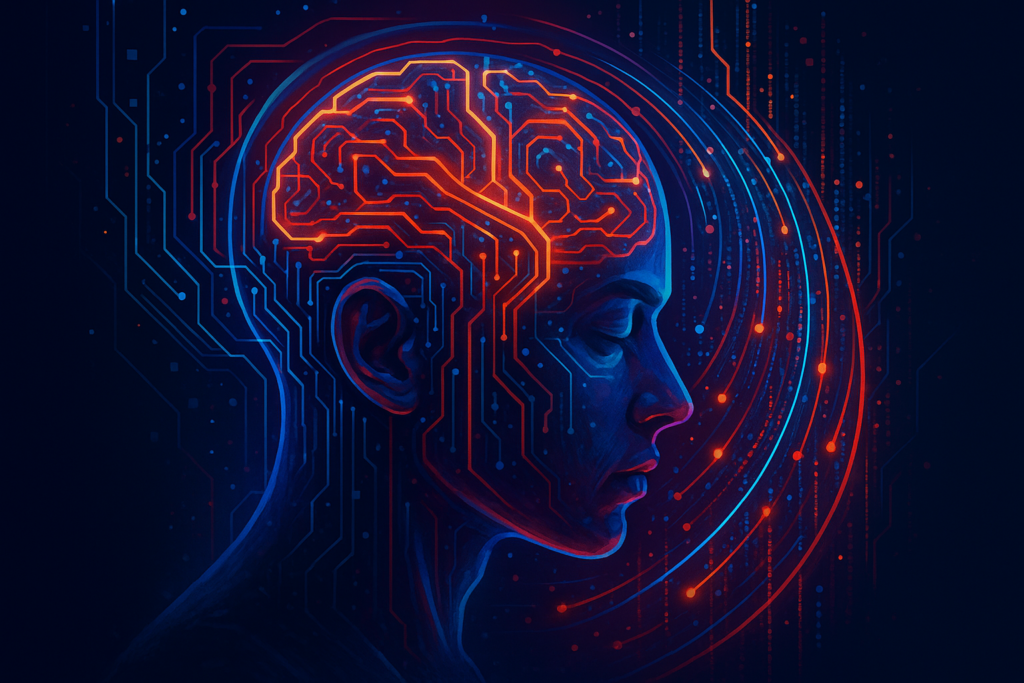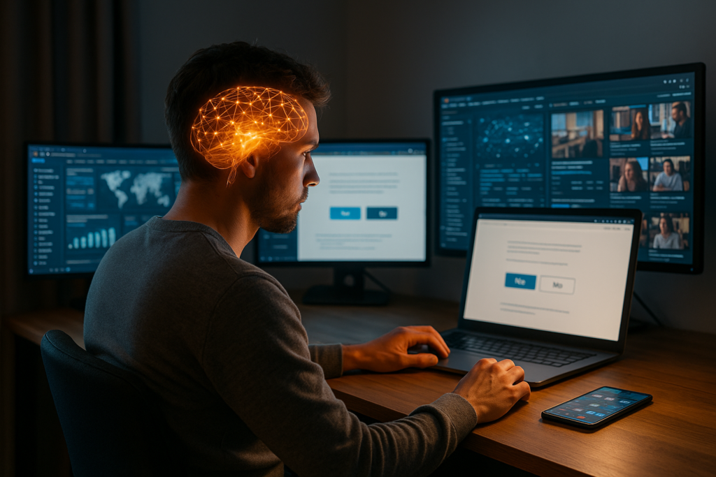 Ambiente digital moldando conexões neurais e decisões humana.”