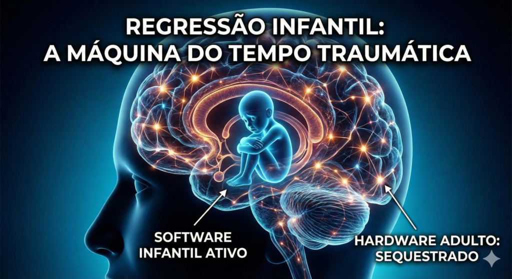 De fato, podemos comparar a regressão infantil a um computador que, após sofrer um ataque de vírus massivo, tenta reiniciar utilizando uma configuração que funcionou no passado. Todavia, o problema reside no fato de que o “passado” para o cérebro traumatizado é, muitas vezes, um período de dependência e vulnerabilidade extrema.