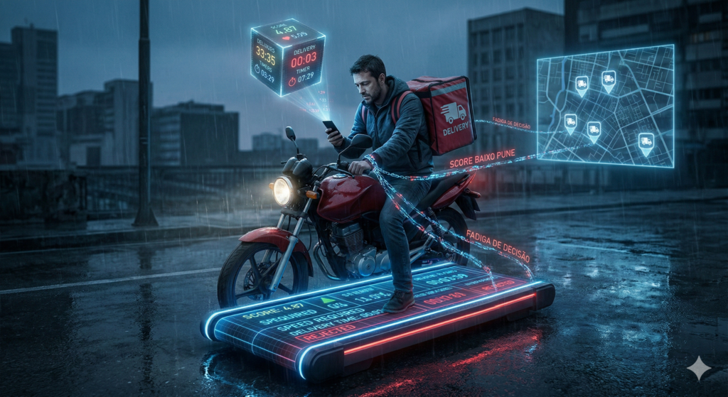 Nesse processo, o trabalhador perde o que há de mais precioso: A agência. Ele não decide mais sua rota ou seu ritmo. Em vez disso, apenas reage a estímulos programados para maximizar o lucro da plataforma, ignorando o desgaste do seu próprio “hardware” biológico.