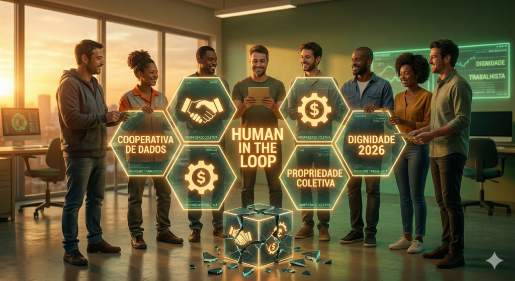 Visto que o valor real sempre foram os Dados, os trabalhadores começaram a organizar Cooperativas de Dados. Nesse modelo, a plataforma pertence aos produtores. A equação de Valor Cooperativo ($V_c$) inverte a lógica do lucro: