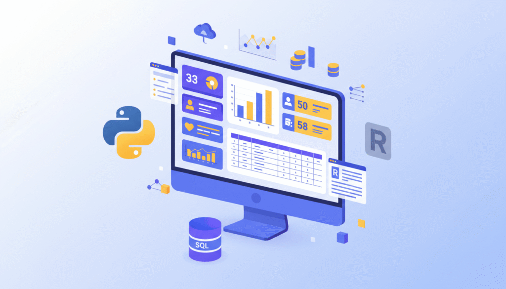 Na prática, poucas linguagens já são suficientes para dar os primeiros passos e construir seus primeiros projetos. O ponto-chave, portanto, é entender para que serve cada uma delas e como aparecem no dia a dia de quem trabalha com dados. Dessa forma, você economiza tempo, mantém o foco no que realmente importa e avança muito mais rápido.