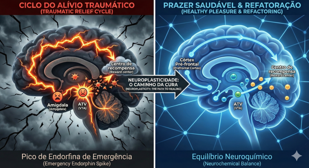 | Característica | Prazer Saudável (Homeostase) | Alívio Traumático (Modo de Sobrevivência) |