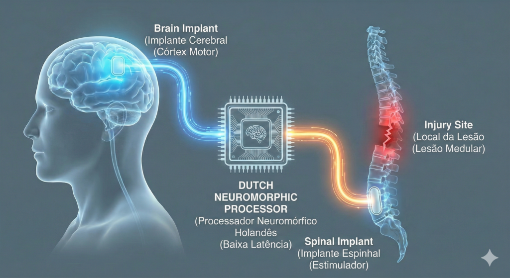 Ademais, essa “ponte” não é apenas um cabo digital. Pelo contrário, ela é um sistema de aprendizado dinâmico. À medida que o paciente treina, o chip holandês ajusta os pesos sinápticos da simulação para se adaptar à plasticidade do cérebro real. Portanto, o hardware e o cérebro evoluem juntos, em uma dança de silício e carbono.